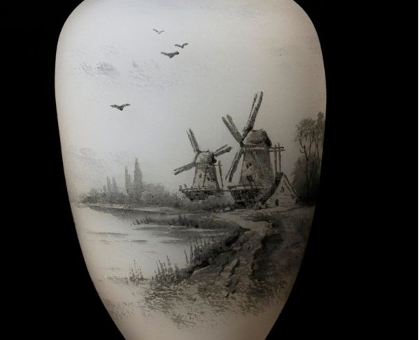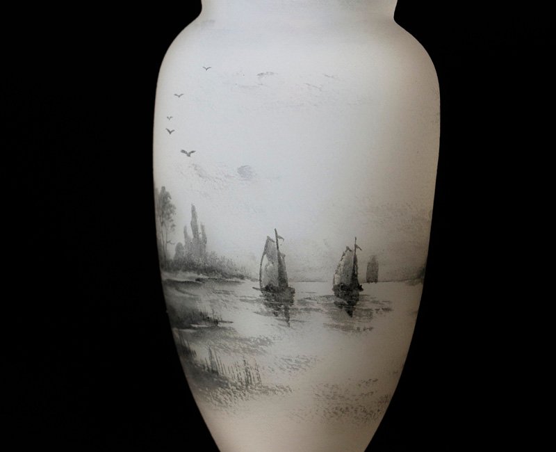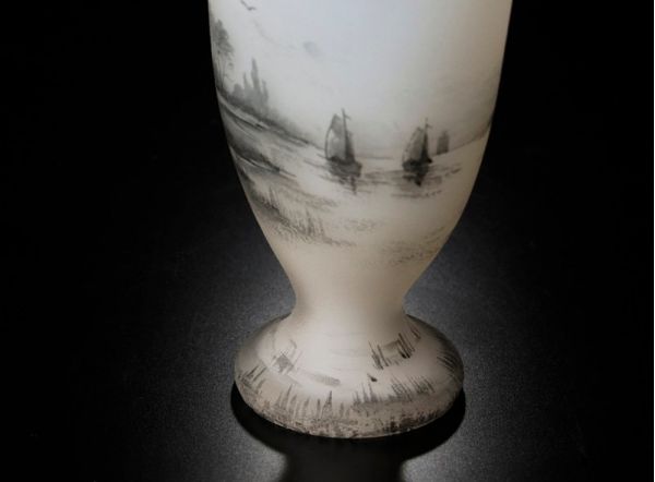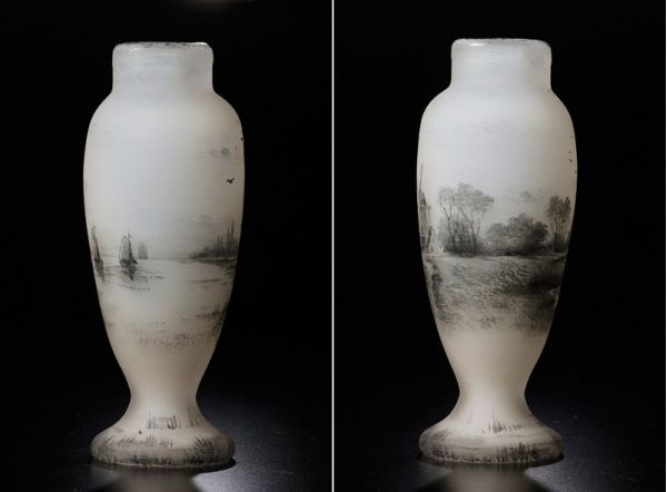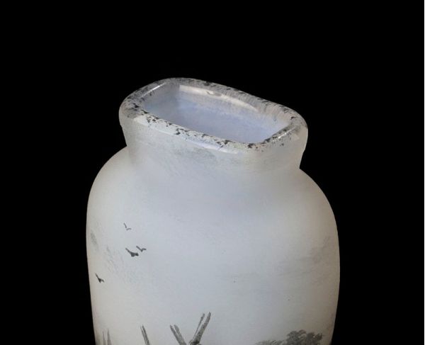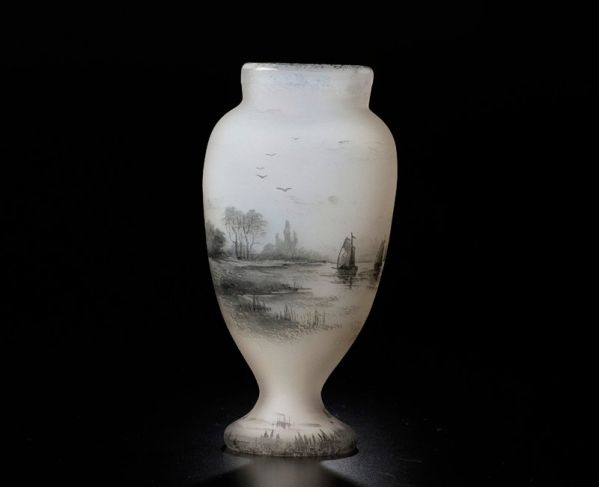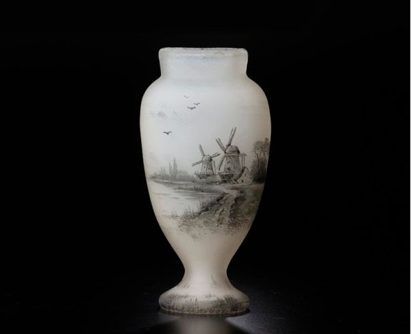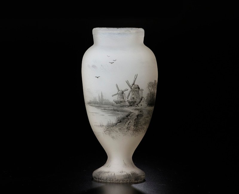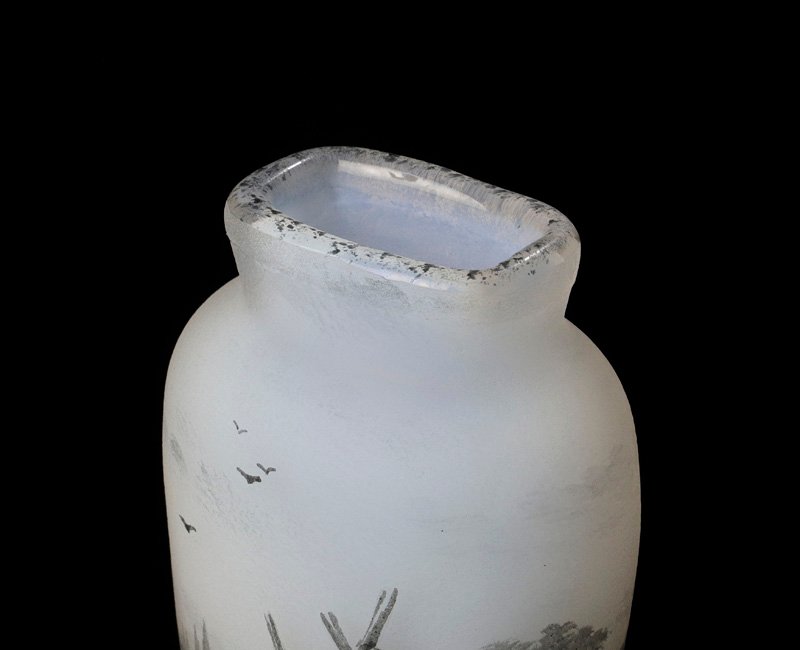 DAUM NANCY ドーム・ナンシー は1878年創立の伝説的なフランスのガラス工芸のブランド。 本作はオランダの湖畔の風景が描かれ、ゆったりとした風情が感じられる味わい深い逸品です。