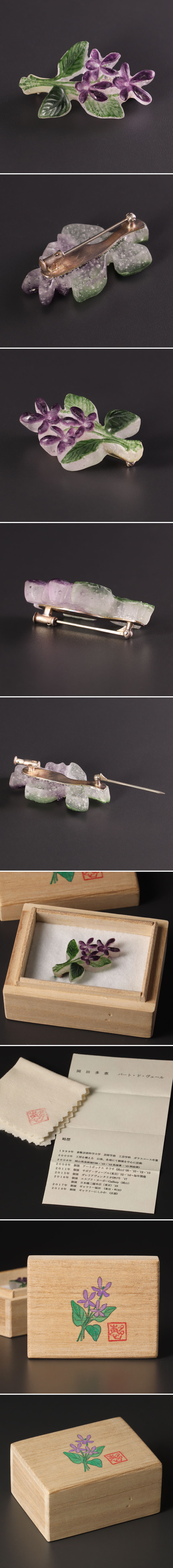 【古美味】人気作家!岡田多恵 パート・ド・ヴェール ガラスブローチ 茶道具 保証品