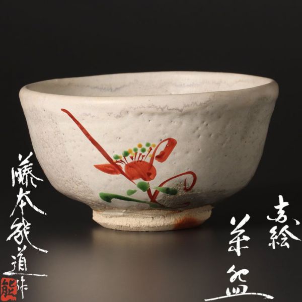 【古美味】人間国宝 藤本能道作 赤絵茶碗 茶道具 保証品