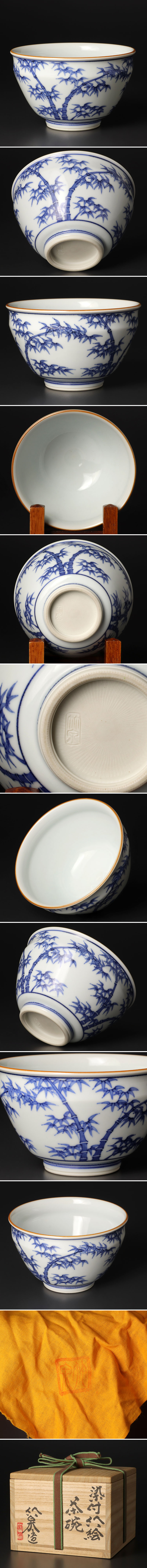 五代三浦竹泉造 染付竹絵 茶碗 茶道具 保証品