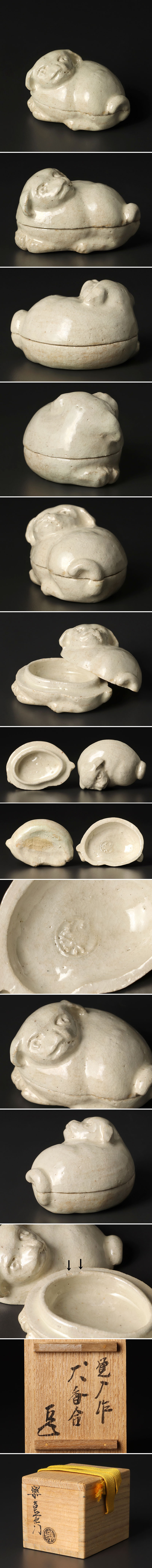 【古美味】十四代楽吉左衛門(覚入)『而妙斎書付』犬香合 茶道具 保証品